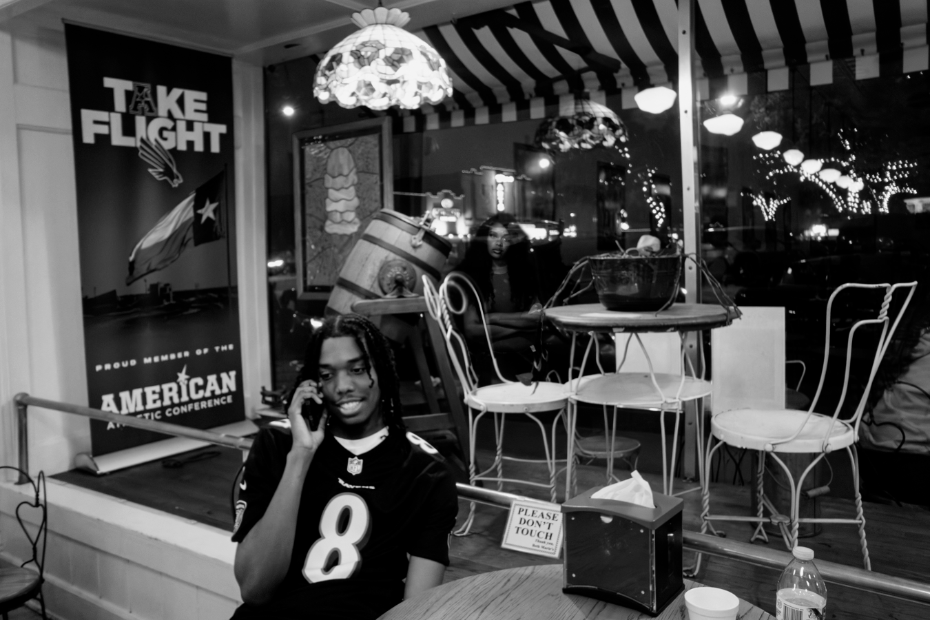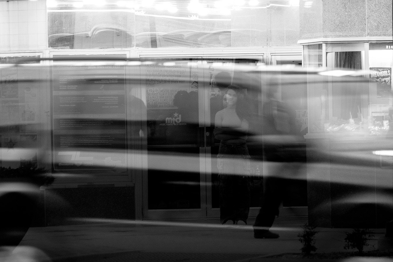 Just Around is a digital imaging creation that tells the story between a young man and a young woman. These two seem to cross paths often ,but only one person knows that the other is there. Through the use of overlaying, slow shutter speed, and desaturation to truly enhance the concept of someone “just around”. The choice of removing color was to enhance the old and cinematic like picture quality.